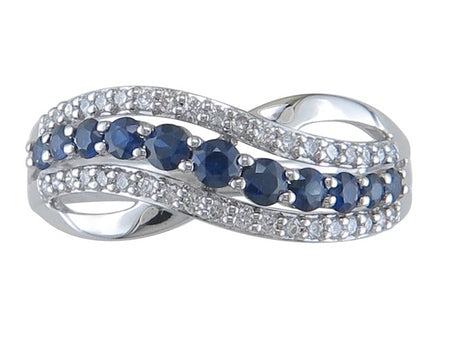 14K White Gold Sapphire & Diamond Band