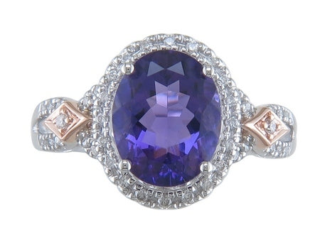 14K White & Rose Gold Amethyst & Diamond Halo Ring