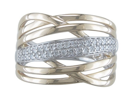 14K Yellow & White Gold Criss Cross Diamond Band