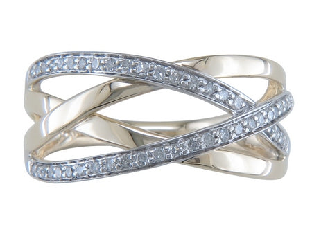 10K Yellow & White Gold Criss Cross Diamond Ring