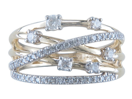 10K Yellow & White Gold Diamond Criss Cross Diamond Ring