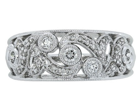 14K White Gold Vintage Milgrain Diamond Ring
