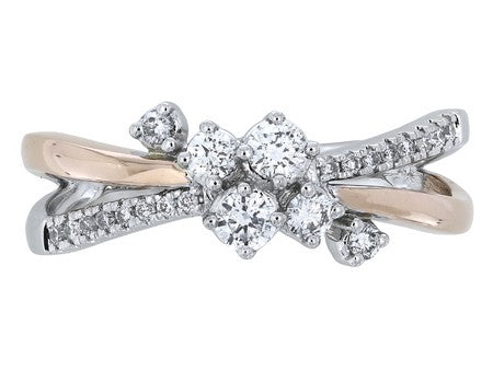 10K White & Rose Gold Crossover Diamond Ring