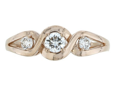 14K Rose Gold Threen Stone Diamond Ring
