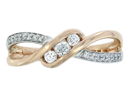 14K White & Rose Gold Infinity Three Stone Diamond Ring