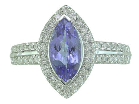 14K White Gold with Black Rhodium Blue Topaz & Diamond Halo Ring