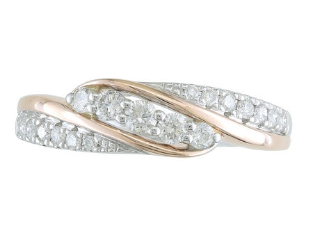 14K White & Rose Gold Criss Cross Diamond Band