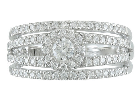 14K White Gold Split Shank Diamond Halo Ring