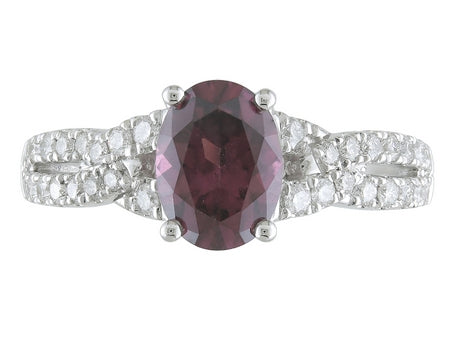 14K White Gold Rhodolite Garnet & Diamond Ring