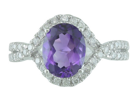 14K White Gold Garnet & Diamond Halo Ring