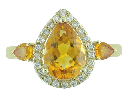 14K Yellow Gold Citrine & Diamond Halo Ring