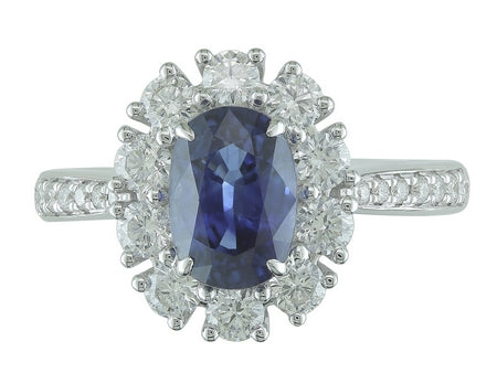 18K White Gold Sapphire & Diamond Halo Ring