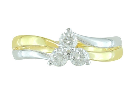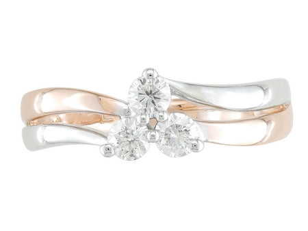 14K Two Toned Rose & White Gold Bypass Three Stone Diamond Ring