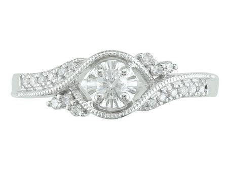 14K White Gold Milgrain & Diamond Ring