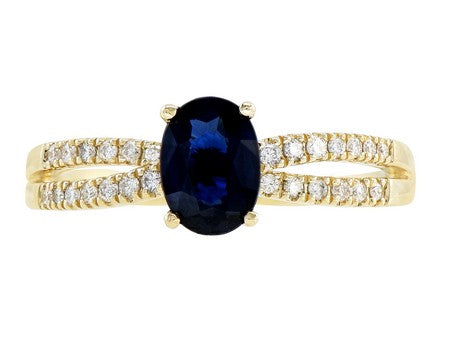 14K White Gold Split Shank Sapphire & Diamond Ring