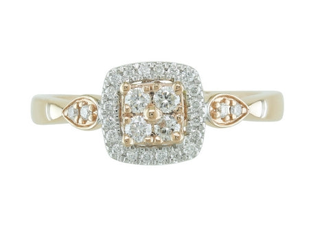 10K White & Rose Gold Diamond Halo Engagement Ring