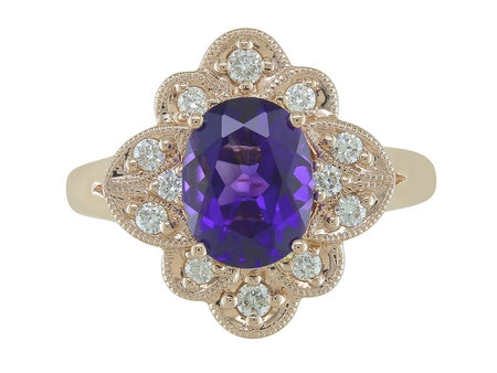 14K Rose Gold Amethyst & Diamond Halo Ring