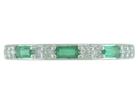 14K White Gold Emerald & Diamond Anniversary Band