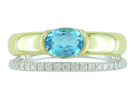 14K White & Rose Gold Blue Topaz & Diamond Ring