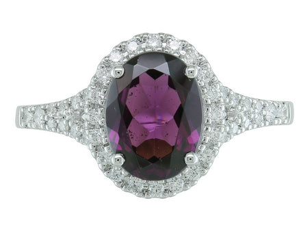 14K White Gold Rhodolite Garnet with Diamond Halo Ring