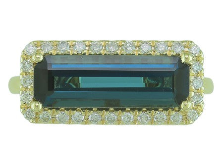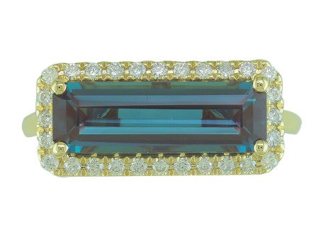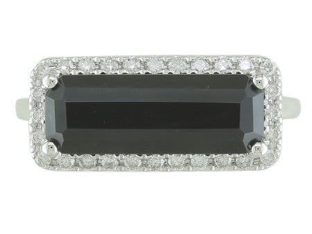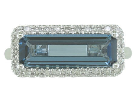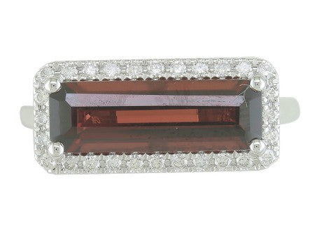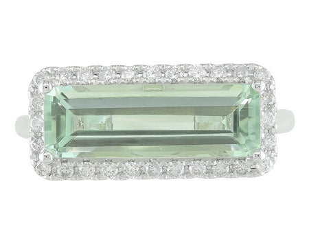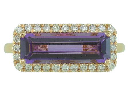 14K White Gold Elongated Elegance East West Set Amethyst with Diamond Halo Ring