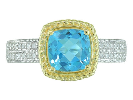 10K Two Toned Yellow & White Gold Blue Topaz with Diamond Ring