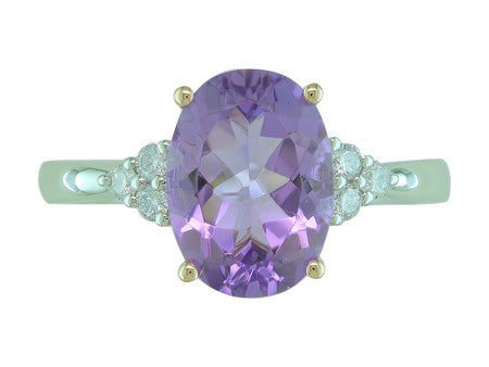 14K White & Rose Gold Pink Amethyst with Accent Diamond Ring