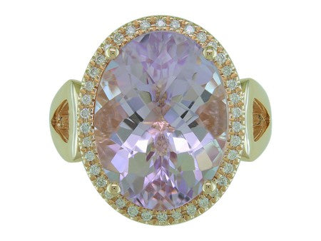 14K Rose Gold Pink Amethyst & Diamond Halo Ring