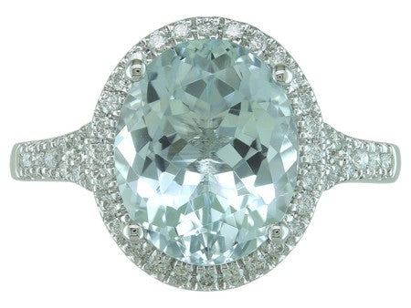 14K White Gold Aquamarine & Diamond Halo Ring