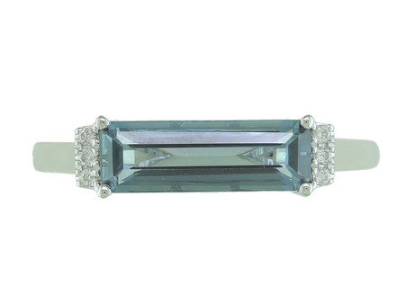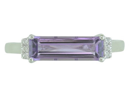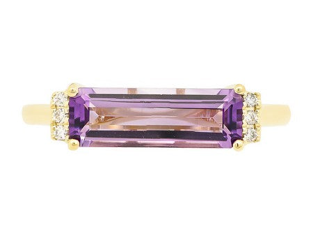 14K Rose Gold Elongated Elegance East West Set Amethyst with Diamond Accent Ring