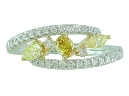 14K Two Toned Yellow & White Gold Fancy Colored Diamond Bypass Ring