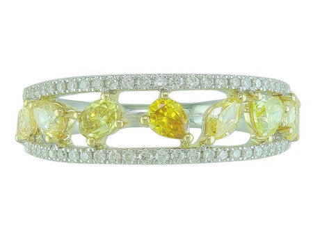 14K Two Toned Yellow & White Gold Fancy Colored Diamond Ring