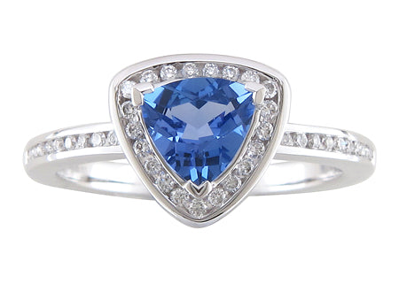 18K White Gold Tanzanite with Channel Diamond Halo Ring