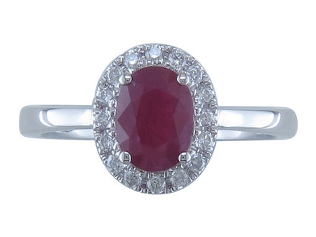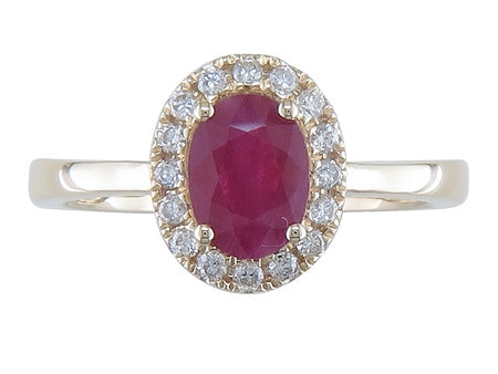 18K Yellow Gold Ruby & Diamond Halo Ring