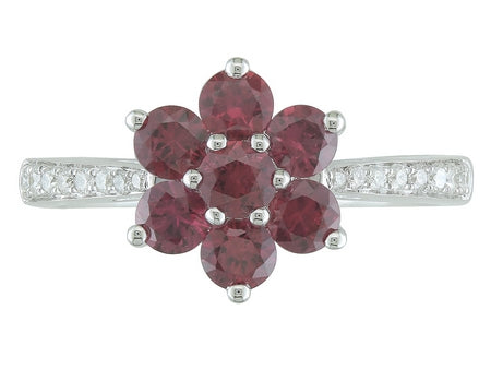 14K White Gold Ruby & Diamond Floral Ring