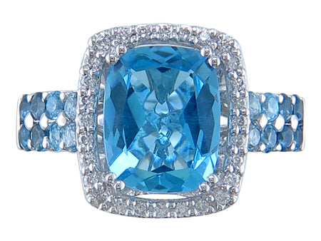 14K White Gold Multiple Stone & Diamond Double Halo Ring