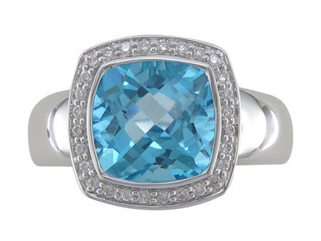 14K White Gold Blue Topaz with Diamond Halo Ring