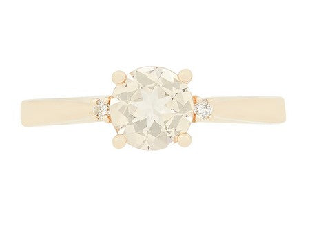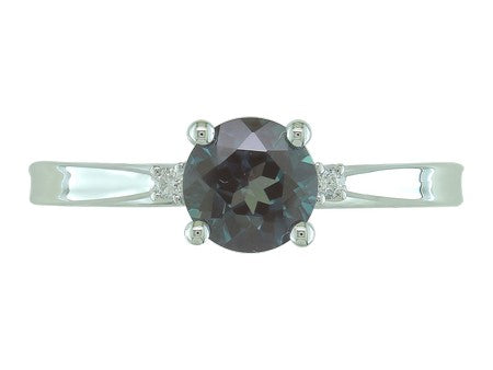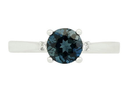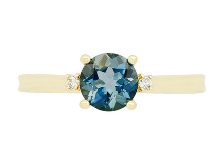 14K White Gold Three Stone Blue Topaz & Diamond Ring
