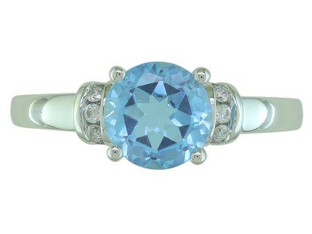 14K White Gold Blue Topaz & Diamond Accent Ring