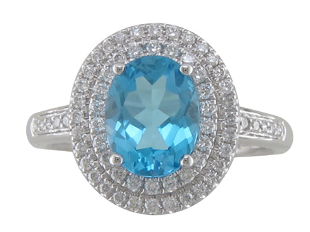 14K White Gold Blue Topaz & Diamond Double Halo Ring