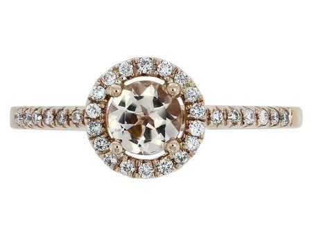 14K Rose Gold Morganite & Diamond Halo Ring, Not Eligible For Memo