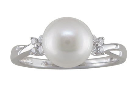 14K Yellow Gold with White Rhodium Pearl with Diamond Accent Ring