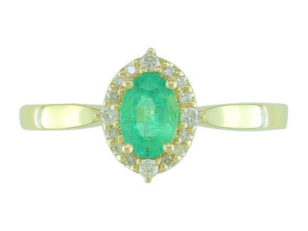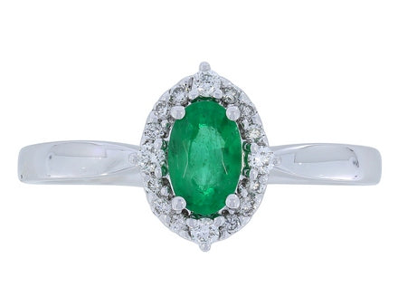 14K White Gold Emerald & Vintage Diamond Halo Ring