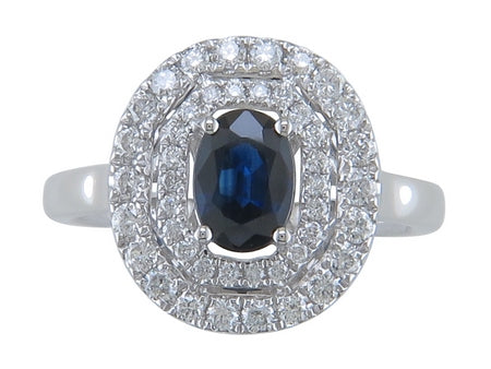14K White Gold Sapphire with Diamond Double Halo Ring