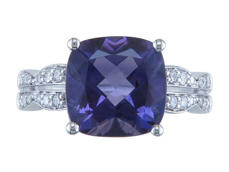 14K White Gold Amethyst with Diamond Accent Ring