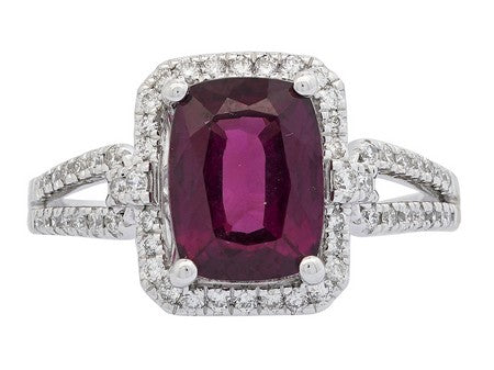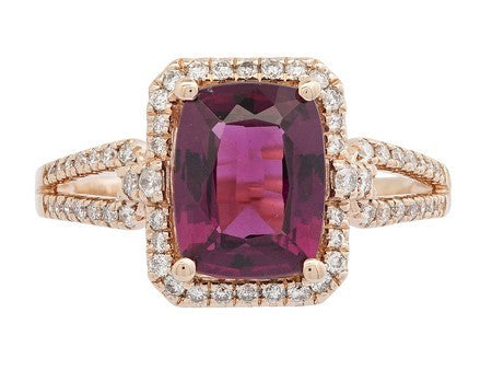 14K Rose Gold Rhodolite Garnet & Diamond Halo Ring