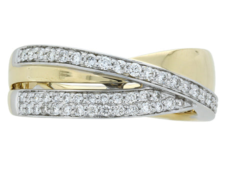 14K Yellow & White Gold Diamond Criss Cross Ring