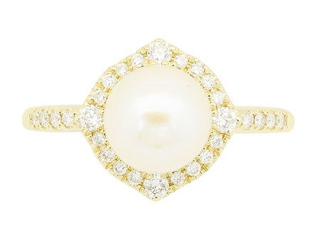14K Yellow Gold Pearl with Diamond Halo Ring