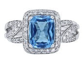 18K White Gold Blue Topaz with Diamond Halo Ring