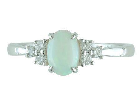 14K White Gold Opal & Diamond Accent Ring, Not Eligible For Memo